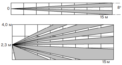 | Угол зоны (Охранные датчики) | 8° поверхностная |